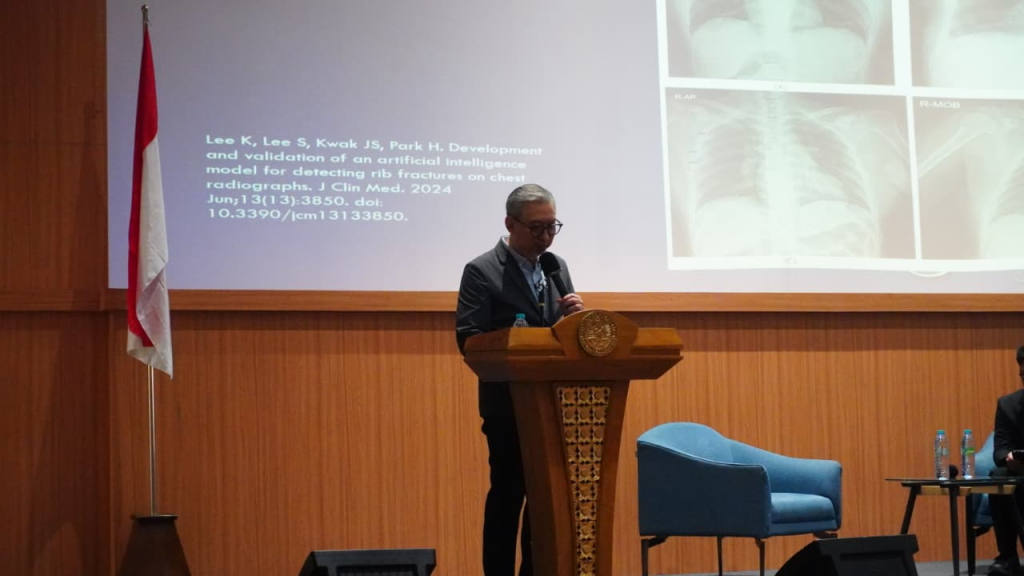 Diskusi semakin mendalam ketika dr. Paulus Rahardjo, Sp.Rad (K), Dokter Spesialis Radiologi RSUD Dr. Soetomo Surabaya, memberikan perspektif klinis pada sesi kedua. Dalam materinya “The importance of AI-based Multimodality in Improving Diagnostic Accuracy in Musculoskeletal Imaging“, beliau mengupas tuntas peran vital multimodalitas berbasis AI. Penjelasan ini membuka wawasan peserta mengenai deteksi anomali pada pencitraan muskuloskeletal yang membutuhkan akurasi tinggi demi keselamatan pasien.